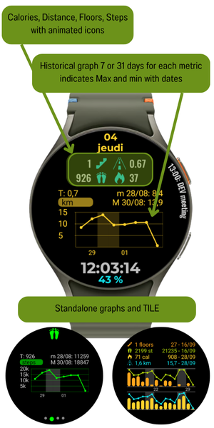 Access clear 7- or 31-day graphs of these metrics directly within the app interface—and possibly on watchfaces that support IMAGE-type slots.