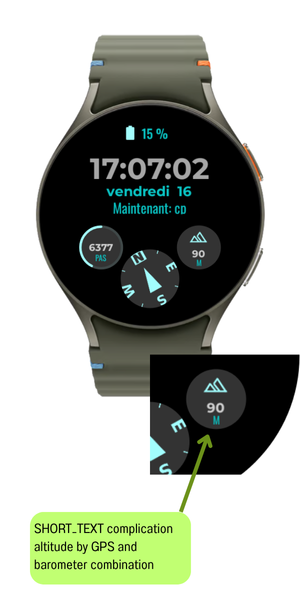 Singular Dials has developed providers that allow you to display: altitude, azimuth (bearing), calories, distance, steps, and floors climbed.